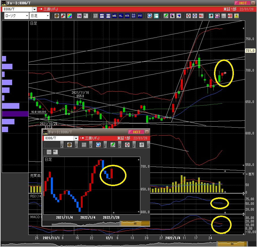 AI 株価予測 20220128の状況8306MUFG Stock Price AI Forecast - 20220128 Status 8306MUFG
