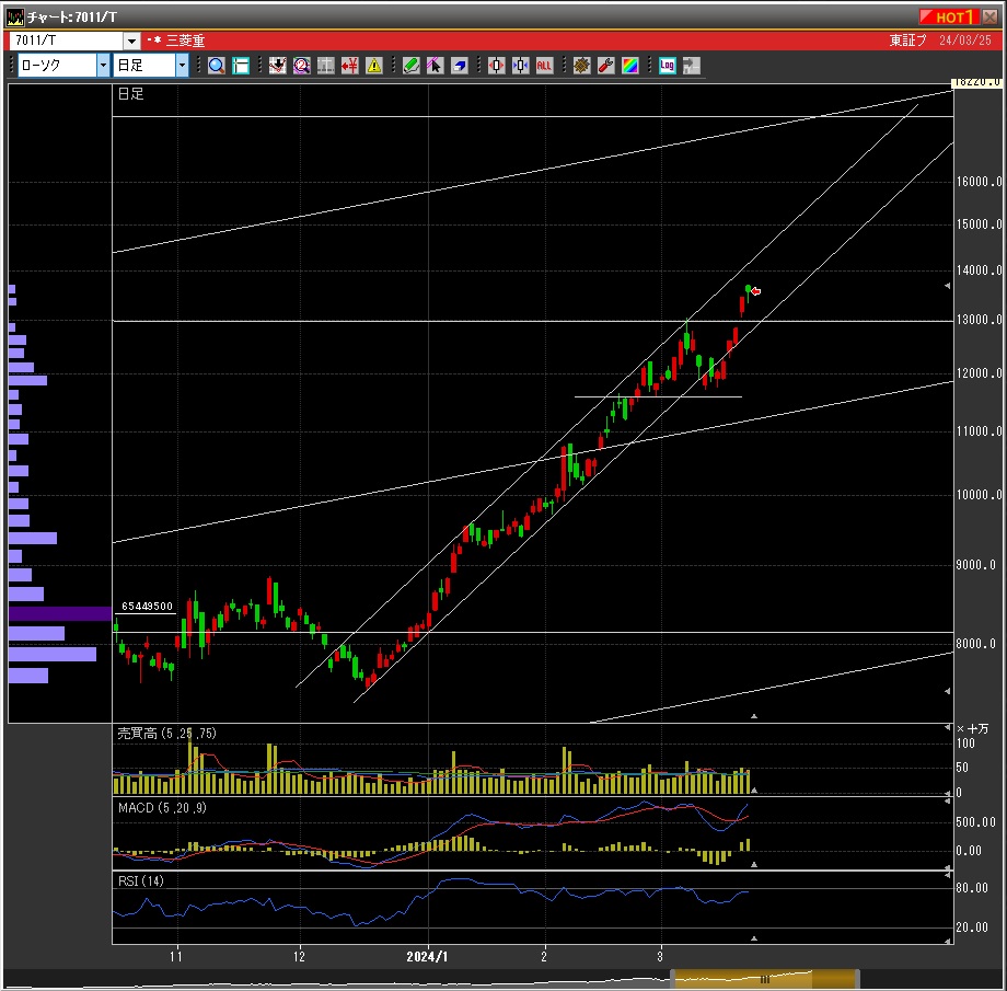 メガバンクの上昇は利上げの効果というより、バリュー株の底上げという性格が強い。メガバンクはことごとく一律に上昇してきた。爆上げしたのはメガバンクだけでなく、建設、重工業など、割安に放置されてきたセクターだ。ただ、このまま上がり続けるには無理があり、どこかでメガバンクのように一旦頭を打つだろう。The rise in mega banks is more characterized by the uplift of value stocks rather than the effect of interest rate hikes. Mega banks have uniformly risen, and not just mega banks but also sectors like construction and heavy industries, which have been undervalued and overlooked, have experienced significant surges. However, it's unlikely that they will continue to rise indefinitely, and at some point, they are likely to experience a downturn, much like what happened with mega banks.